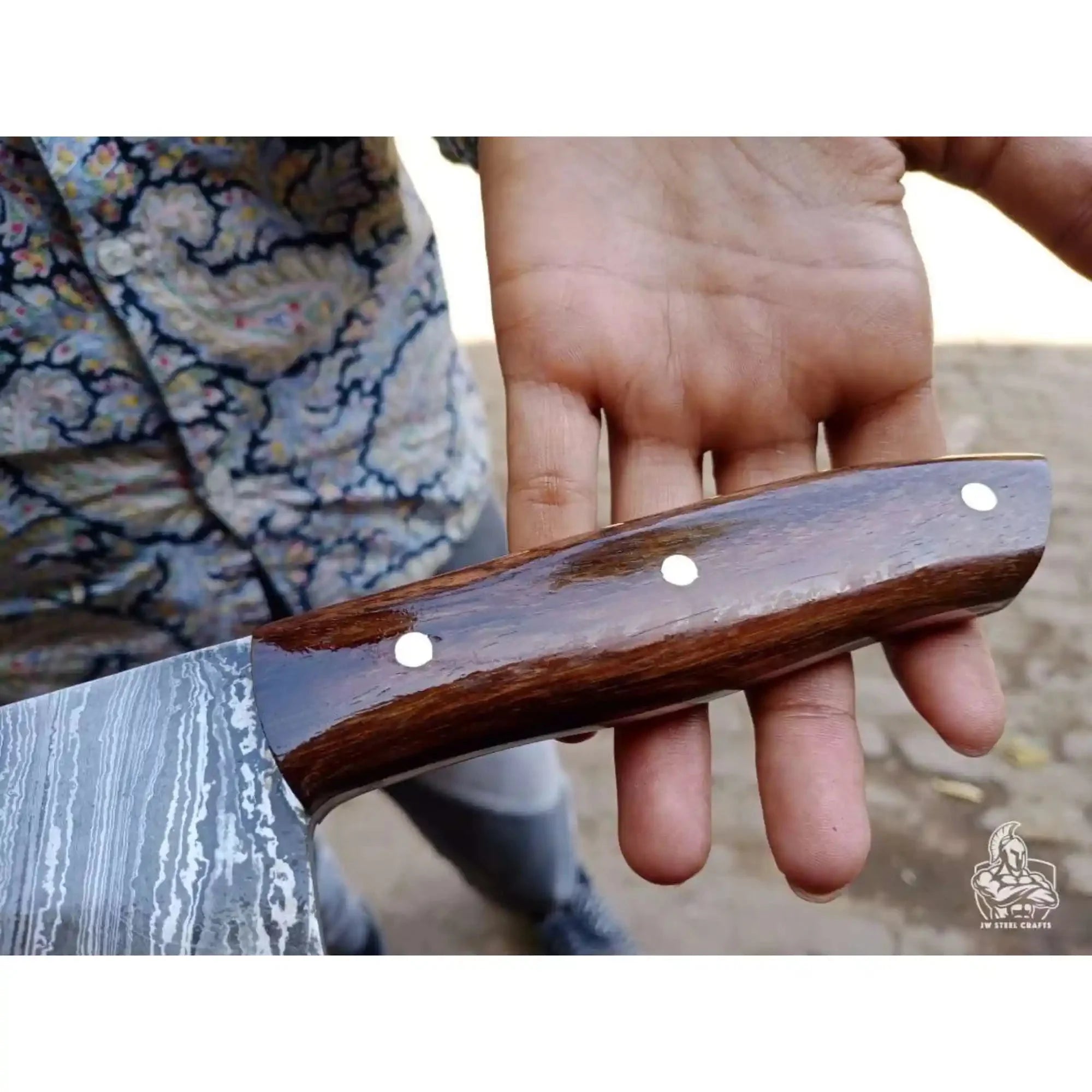 JW SteelCrafts produces each Damascus cleaver using traditional forging methods and precision finishing. Every knife delivers consistent cutting performance, strength, and long-term reliability. This cleaver provides the control and durability required for serious kitchen work.