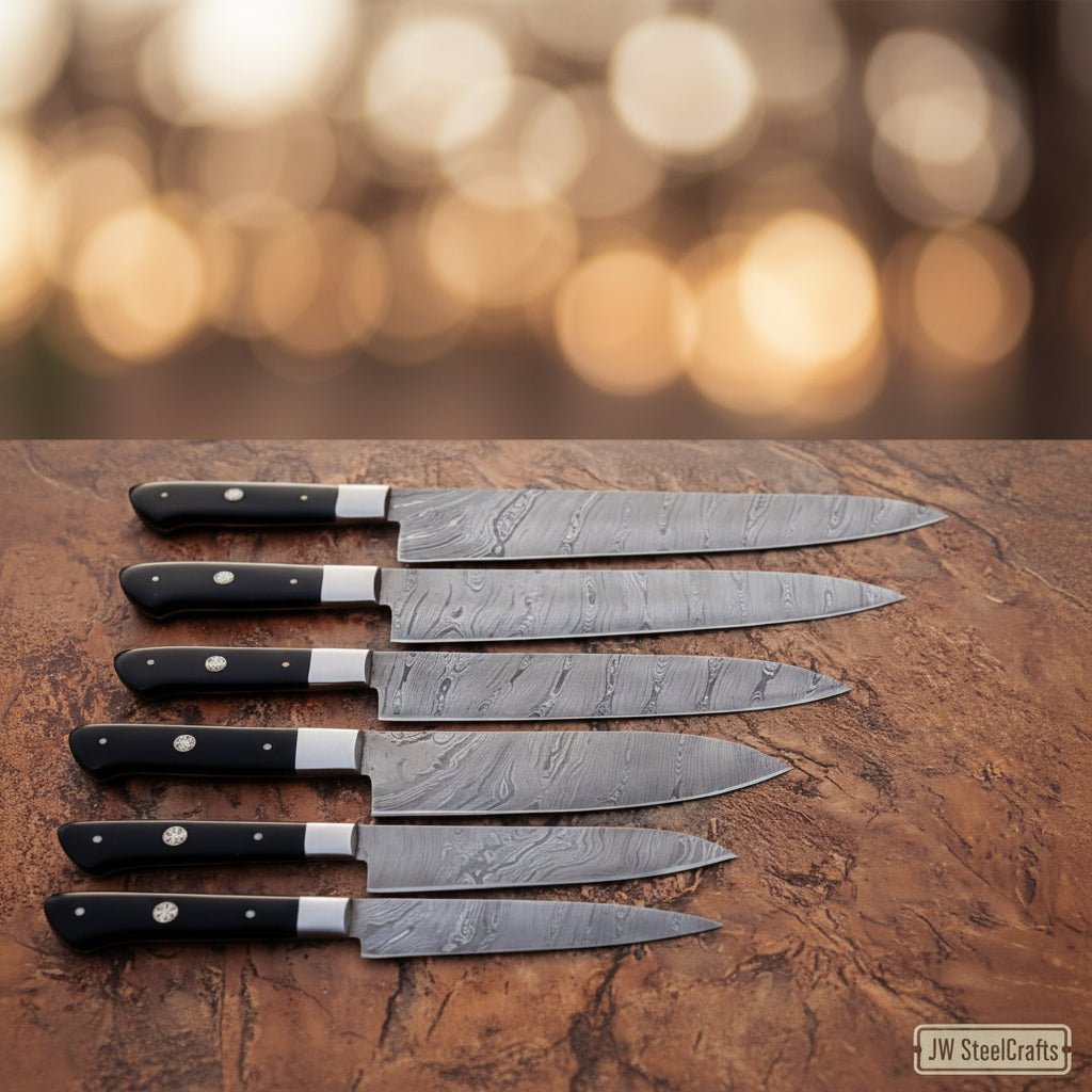 JW SteelCrafts produces handmade kitchen knife sets designed for precision slicing, durability, and professional kitchen performance.