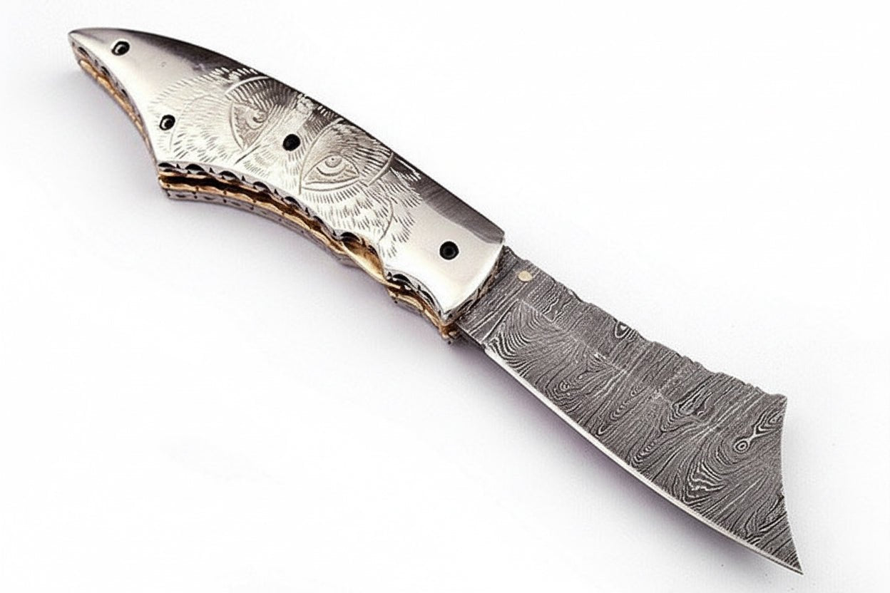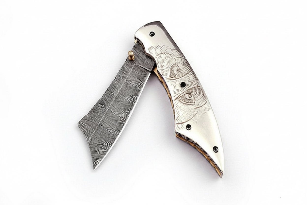 This handmade Damascus folding knife is made for those who value character, detail, and honest craftsmanship. Nothing here is mass-produced—every blade and handle is shaped, fitted, and finished by hand.