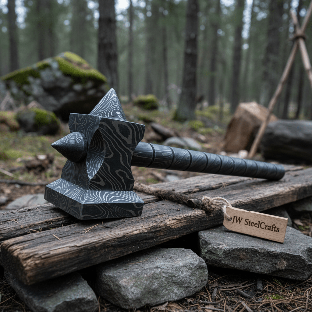 Discover the exquisite craftsmanship of the **BLACKSMITH Custom Handmade - 12.Inches Beautiful Full Damascus Hammer MB-0024** by Divine Enterprises.