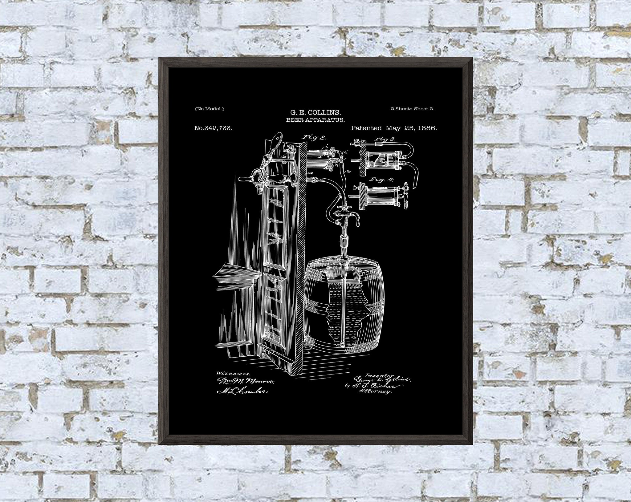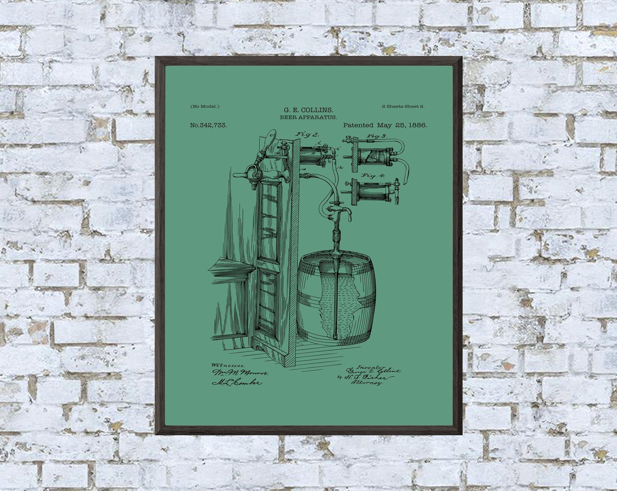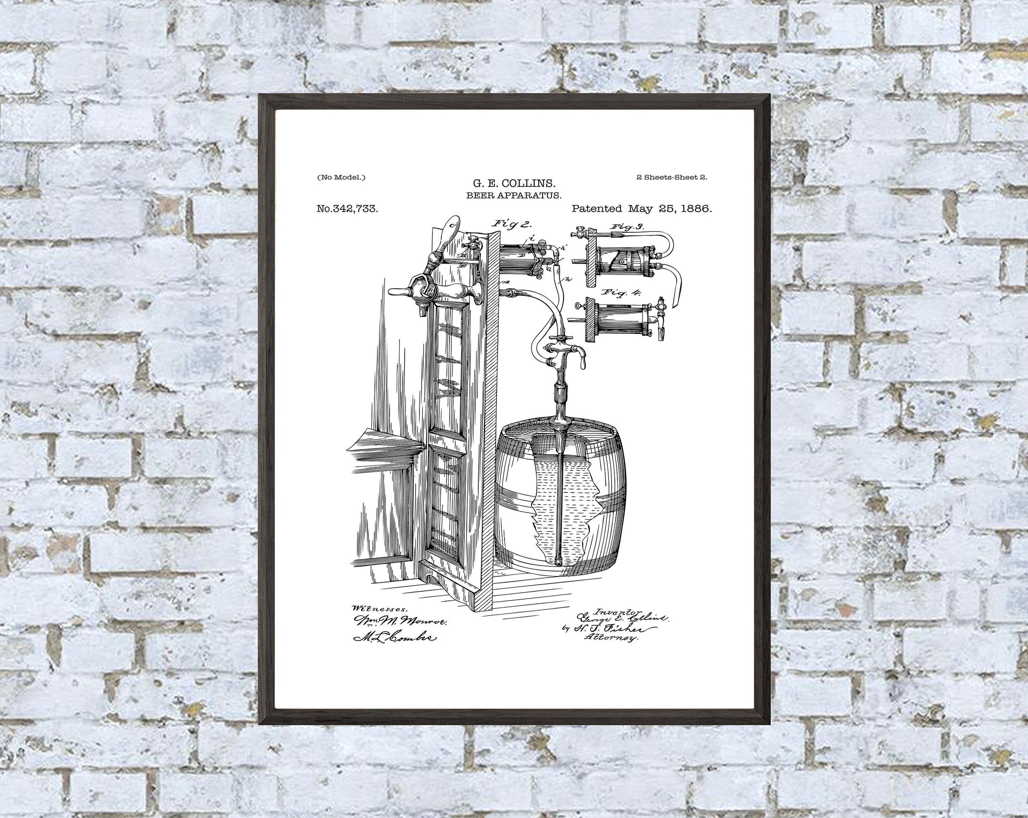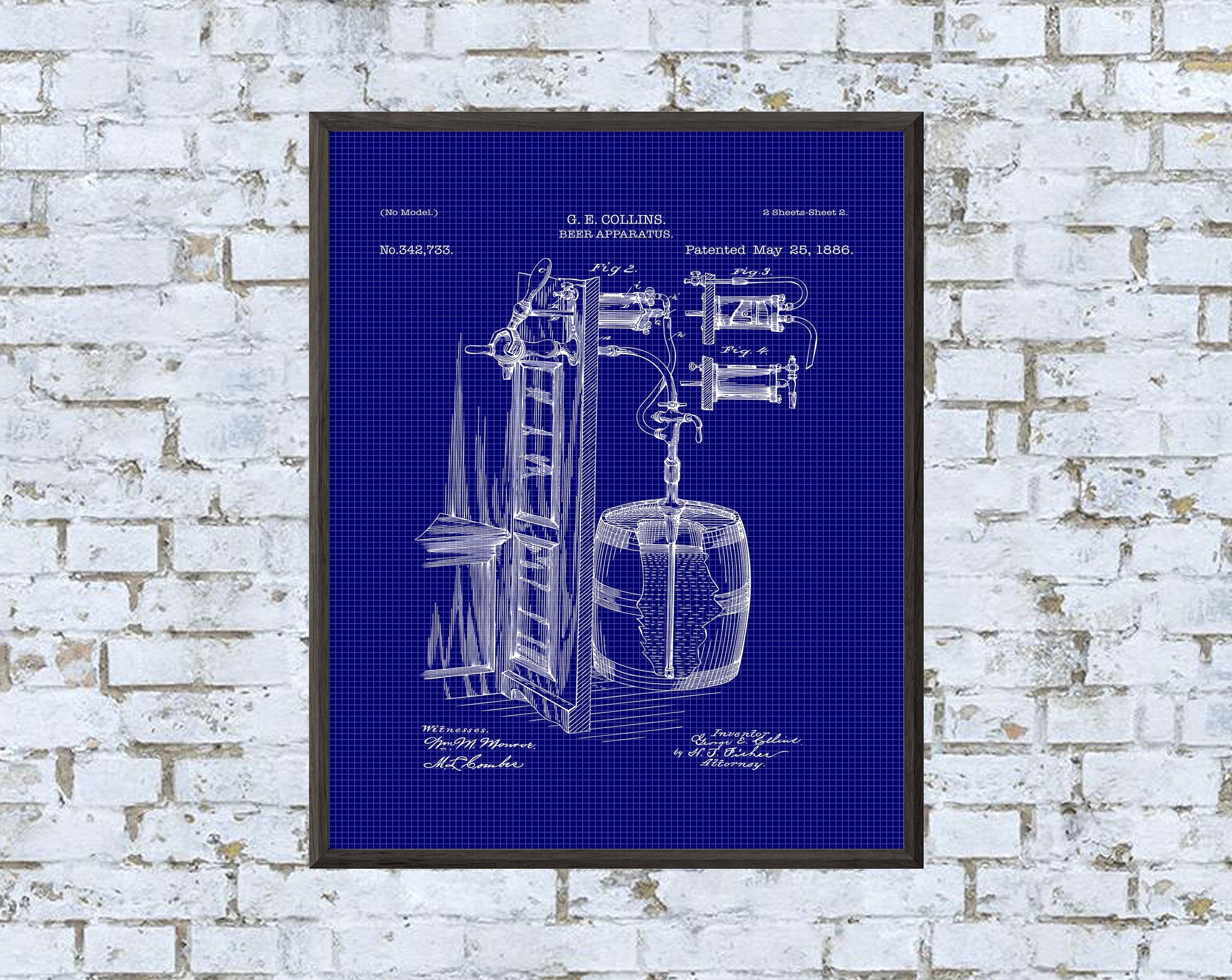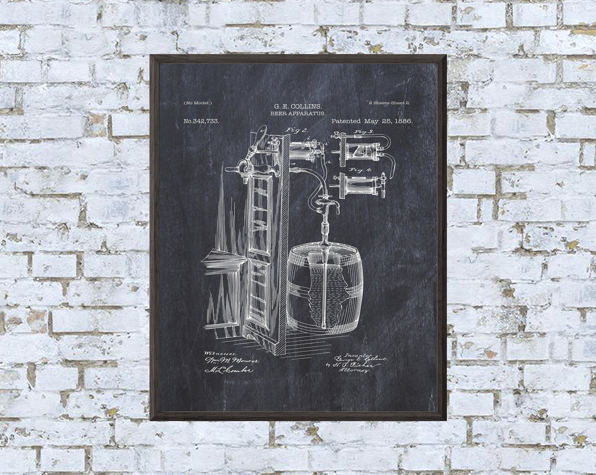 Enhance your space with a high-quality digital download of a beer apparatus patent drawing - includes 7 different backgrounds! Perfect as a quick gift or to adorn your home or office. Easily printable at your convenience, this download comes in a variety of styles including Parchment, Chalkboard, Blueprint, and more.