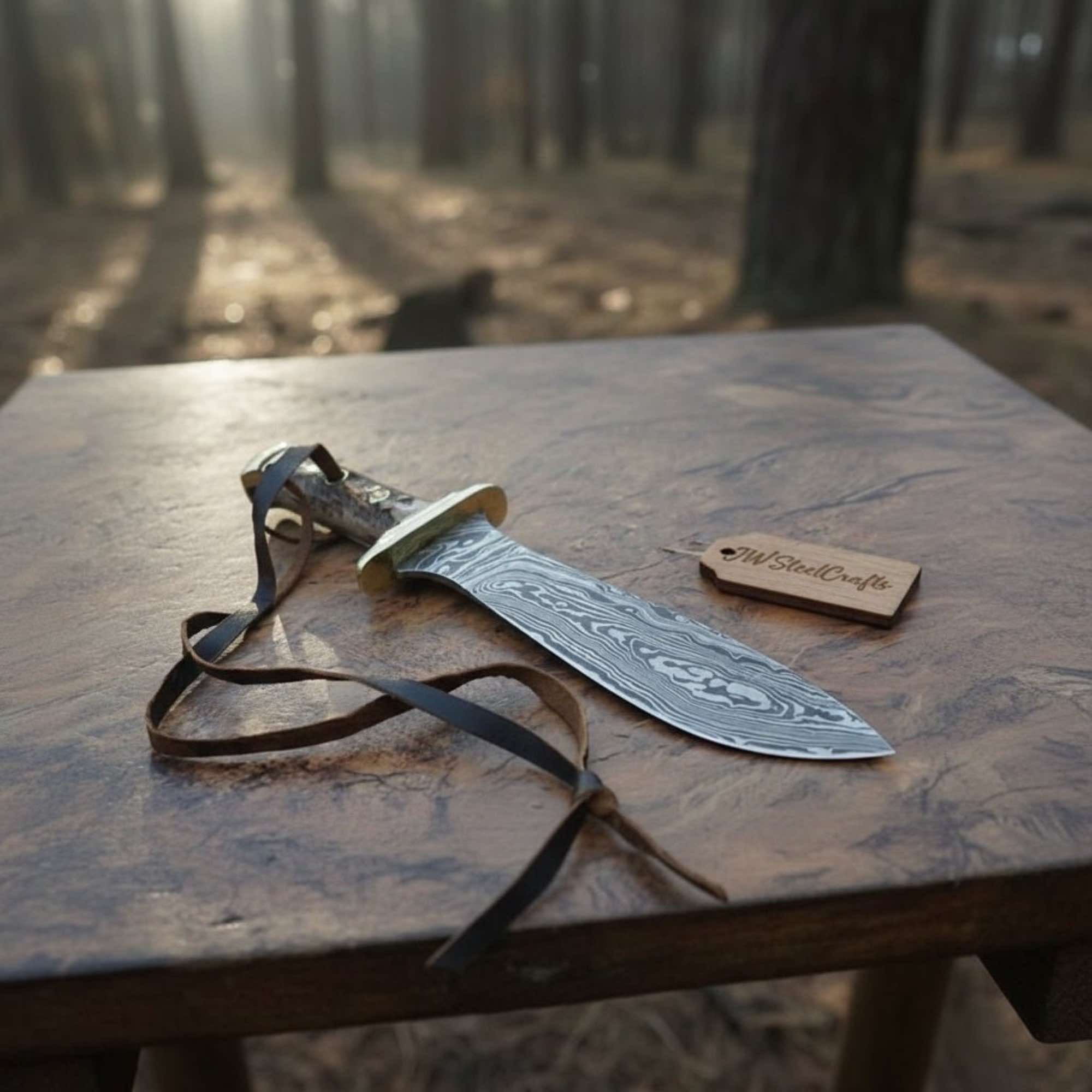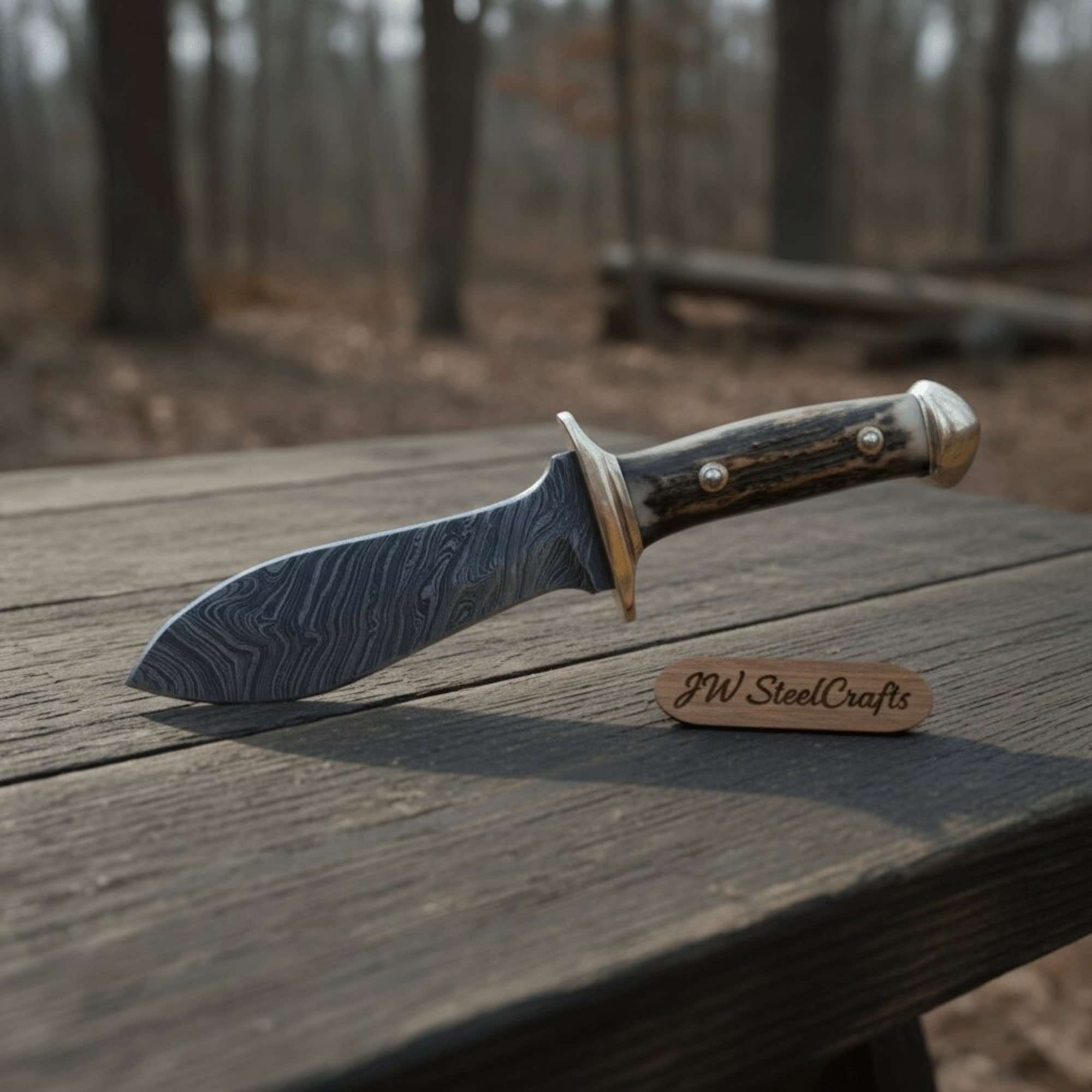Every JW SteelCrafts knife is individually handmade. Natural variations in Damascus pattern and stag handle ensure that each knife remains a one-of-a-kind piece.