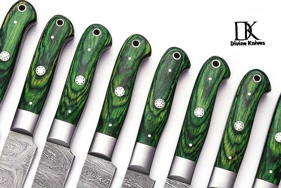 Discover the exquisite craftsmanship of the **4 Pc's Steak Knives Set. Matching to 1081 Set Green Pakka Wood Handle DK-0233** by Divine Enterprises.