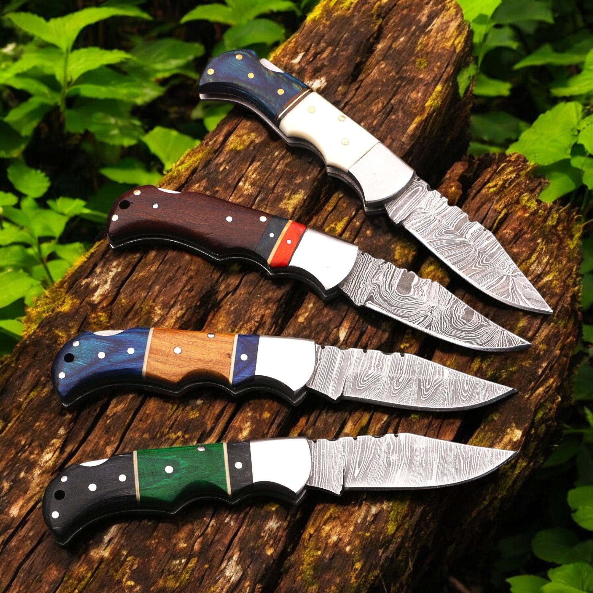 This hand-forged Damascus steel folding knife is built for everyday carry, outdoor use, and serious collectors who value durability and traditional craftsmanship. Each blade is forged from layered Damascus steel, creating a natural flowing pattern that makes every knife one of a kind.