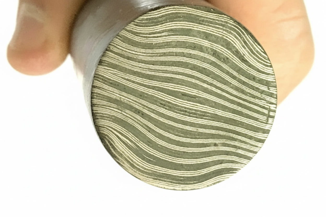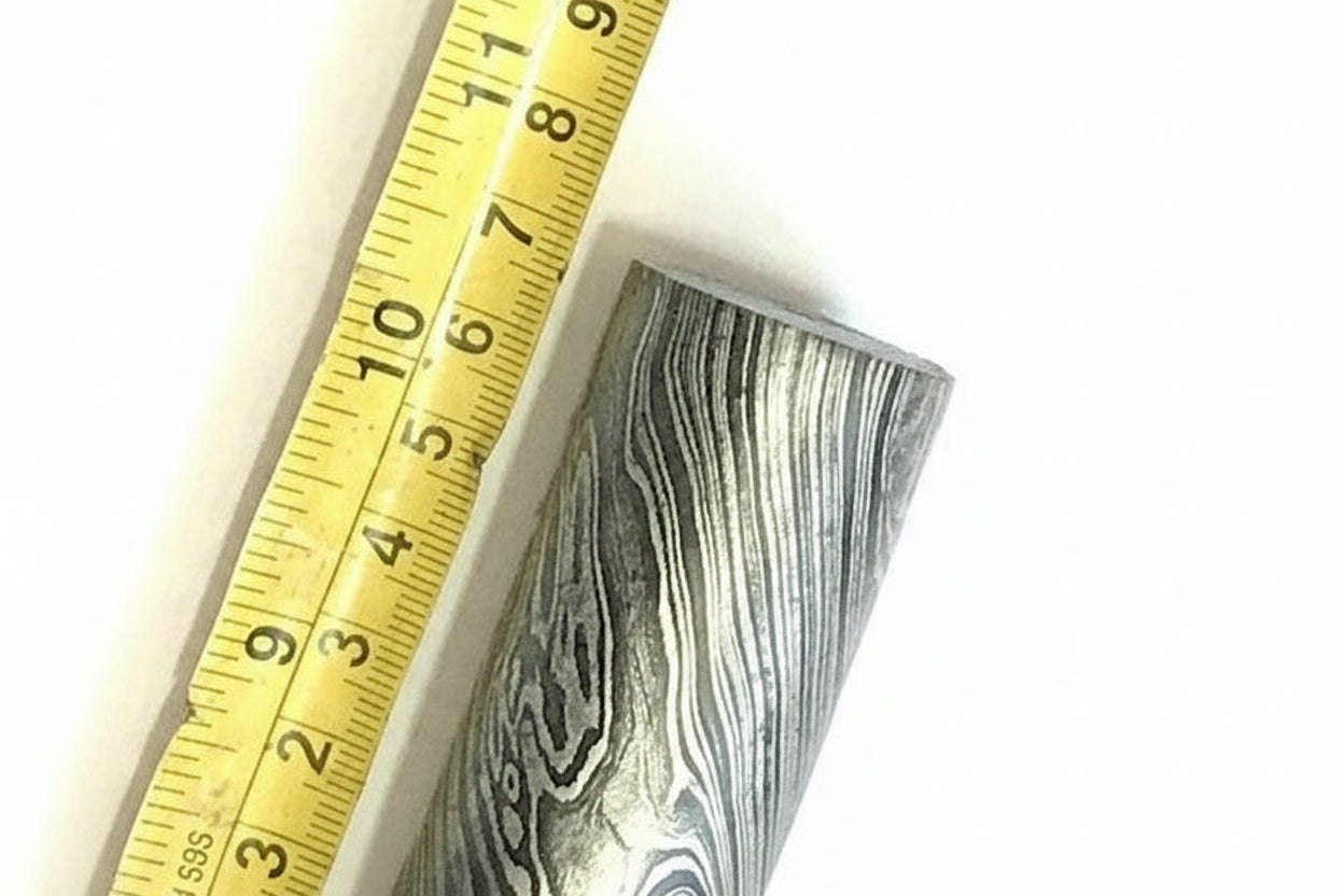 Discover the exquisite craftsmanship of the **Damascus twist bar round bar for ring/guard making 30 mm thick 10.5 inch DE-0076** by Divine Enterprises.