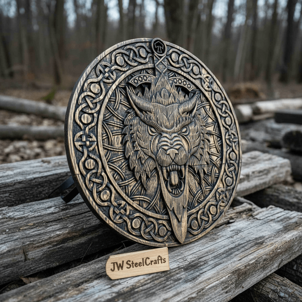 Handcrafted Viking Shield with Matching Engraved Axe – Nordic Art Decor Set