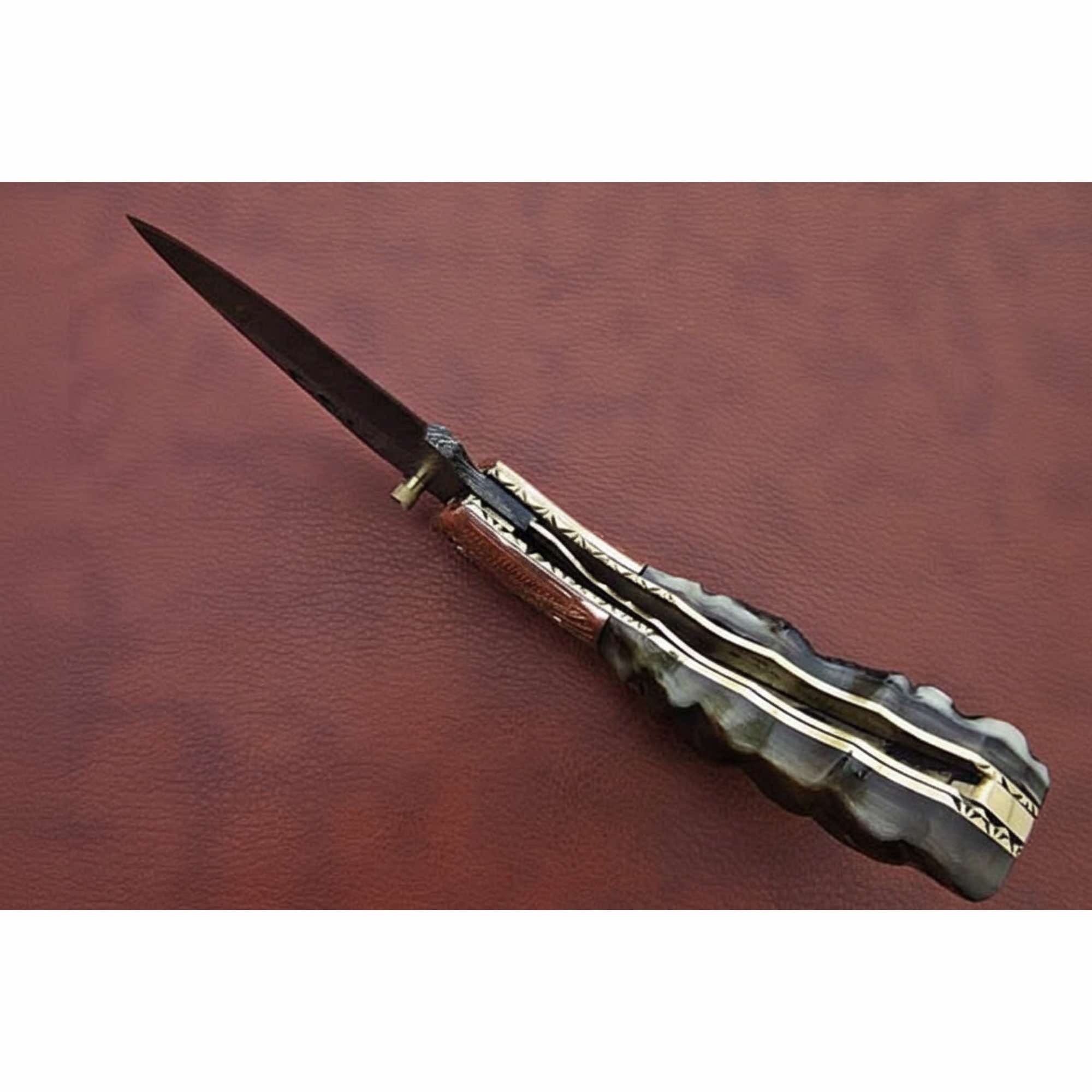 - Damascus steel blade: layered pattern with a sharp, reliable edge