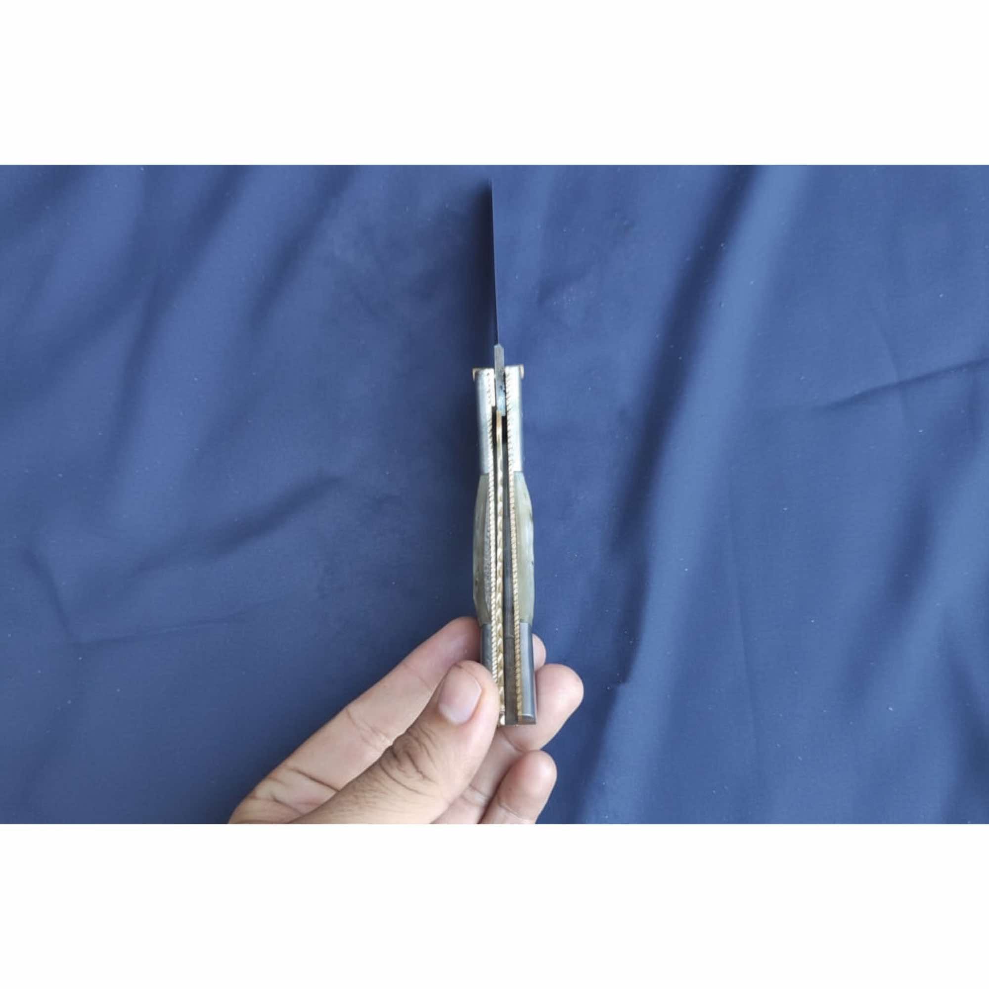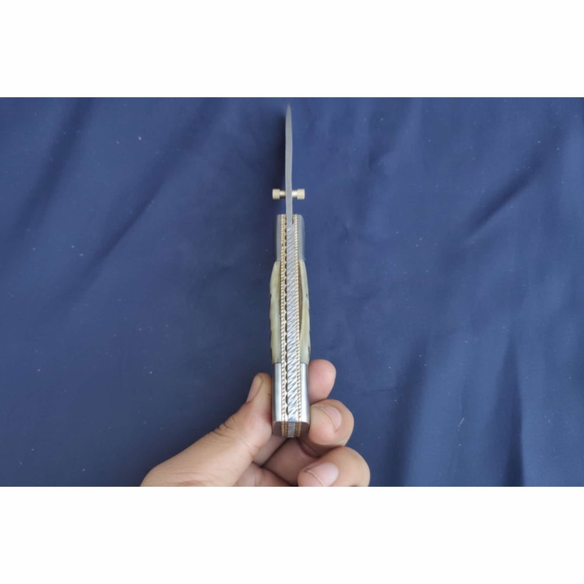 Each knife is individually handmade, so subtle variations in blade pattern, bone tone, and finish are natural and part of its character. This piece works equally well as a collector’s item, an everyday pocket knife, or a thoughtful handcrafted gift.