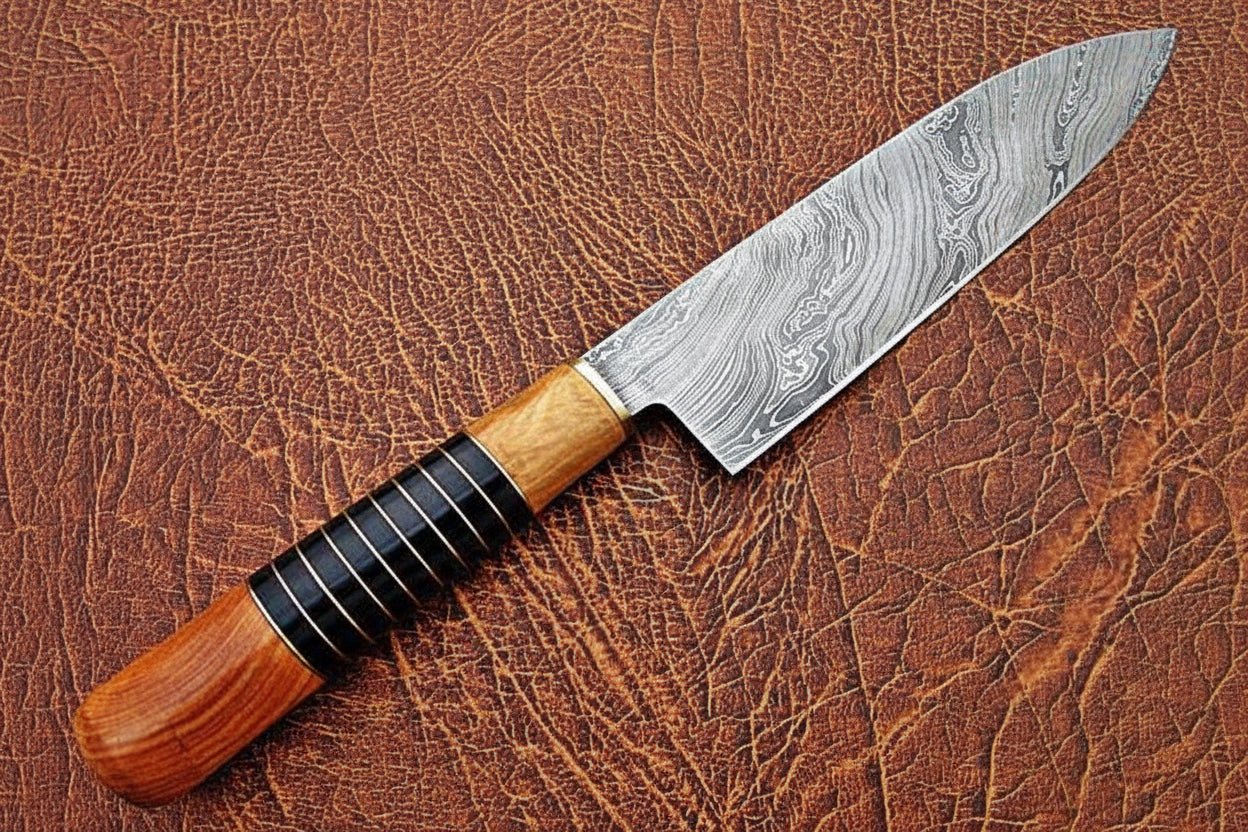 For users building a complete handcrafted kitchen collection, see the Kiritsuke-Style Damascus Chef Knife with Blue Wood Handle and Steel Bolster , which offers precision cutting control and professional performance.