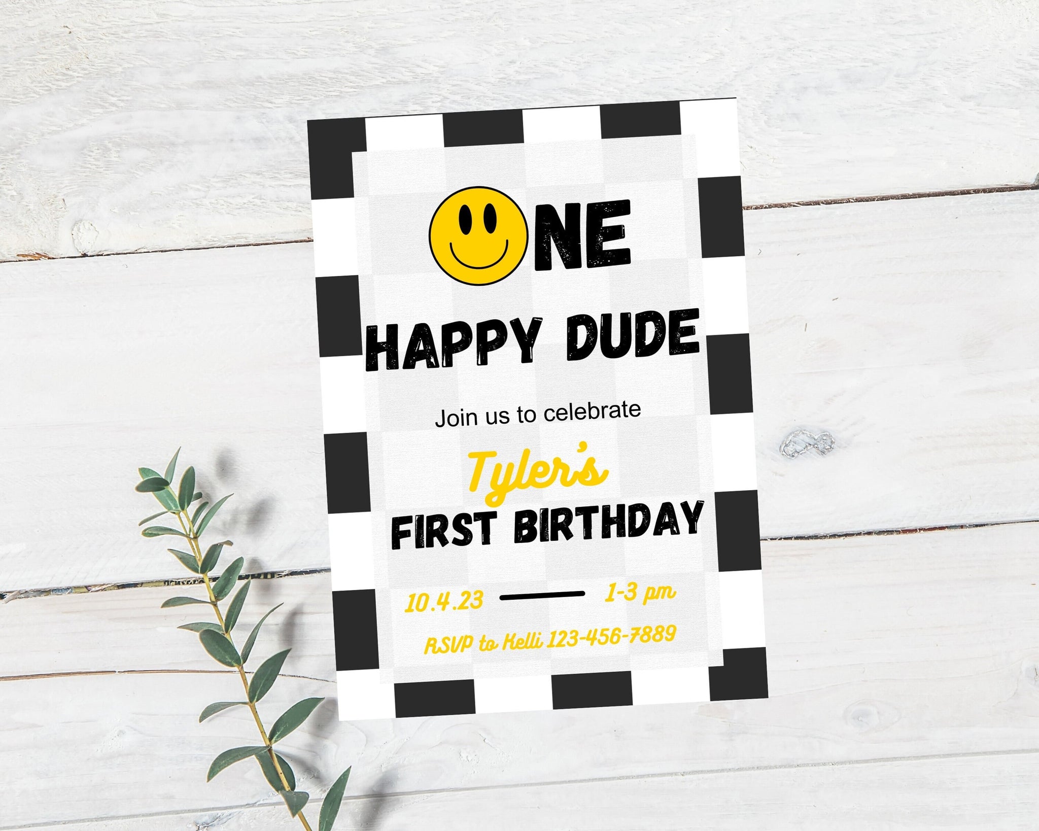 One Happy Dude Birthday Invitation | One Happy Dude First Birthday | Editable Birthday Invite Template | Smiley Face Retro First BirthdayThis is a DIGITAL FILE—no physical product will be shipped.This invitation is self- editable in Canva, easy to use on your computer or phone (app or website). This product allows you to make edits where you want! Once customized to your liking, you can save your template & either print or send it digitally!
