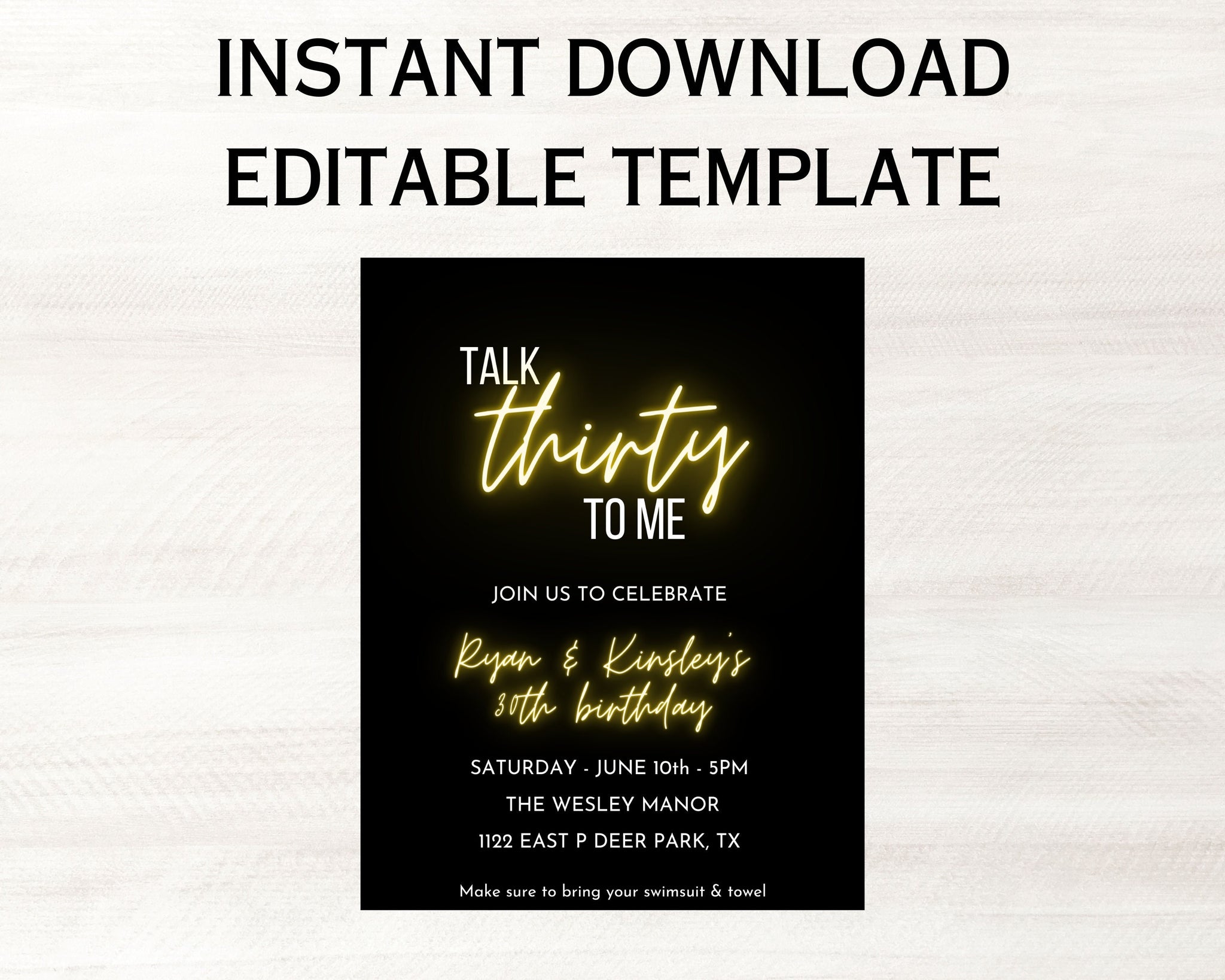 Talk Thirty To Me Invitation Template | Editable Invitation | 30th Birthday | Birthday Invitation