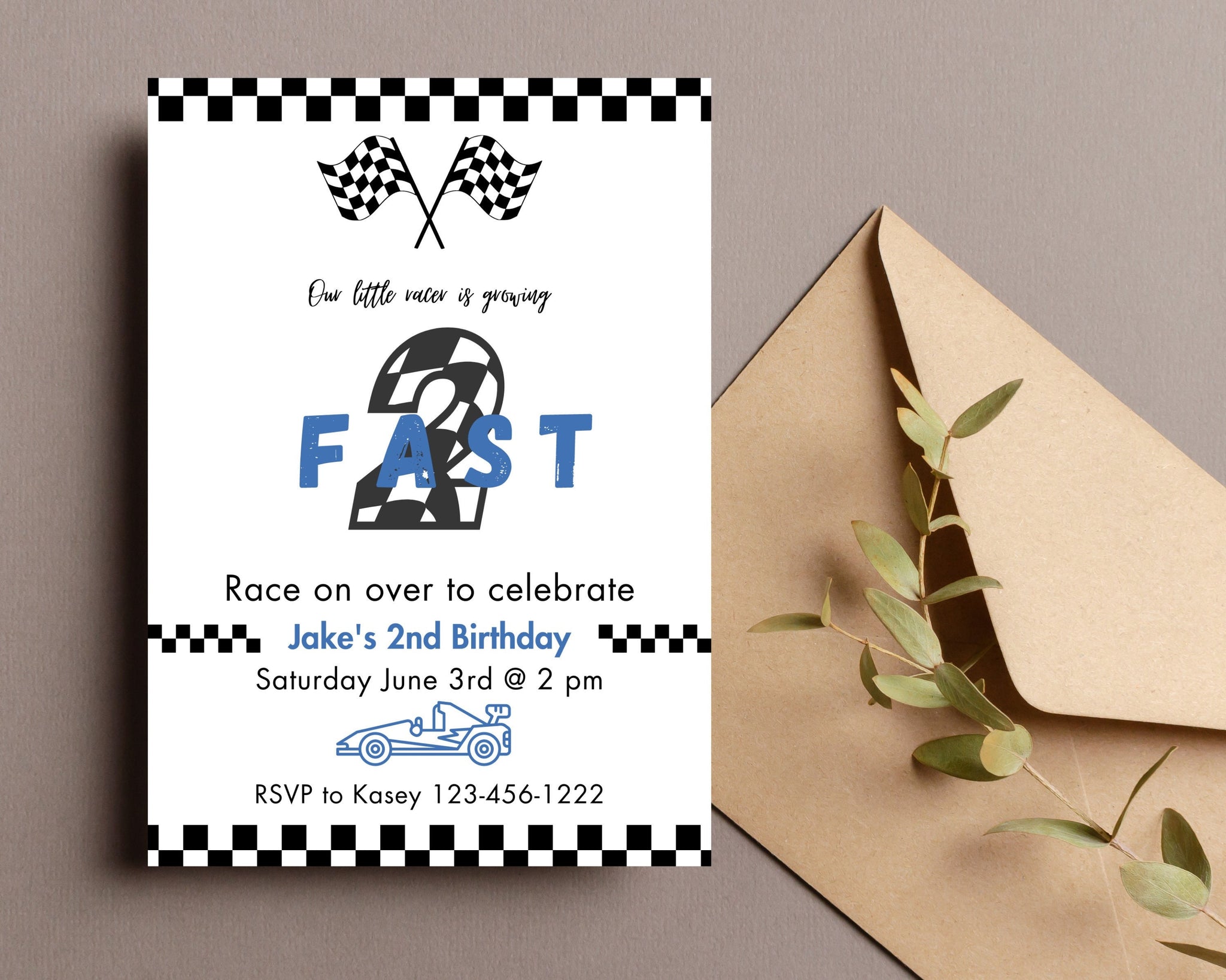 Two Fast Birthday Invitation | 2nd Birthday Invitation | Editable Digital Download Invitation | Race Car Theme Birthday | Racing Birthday